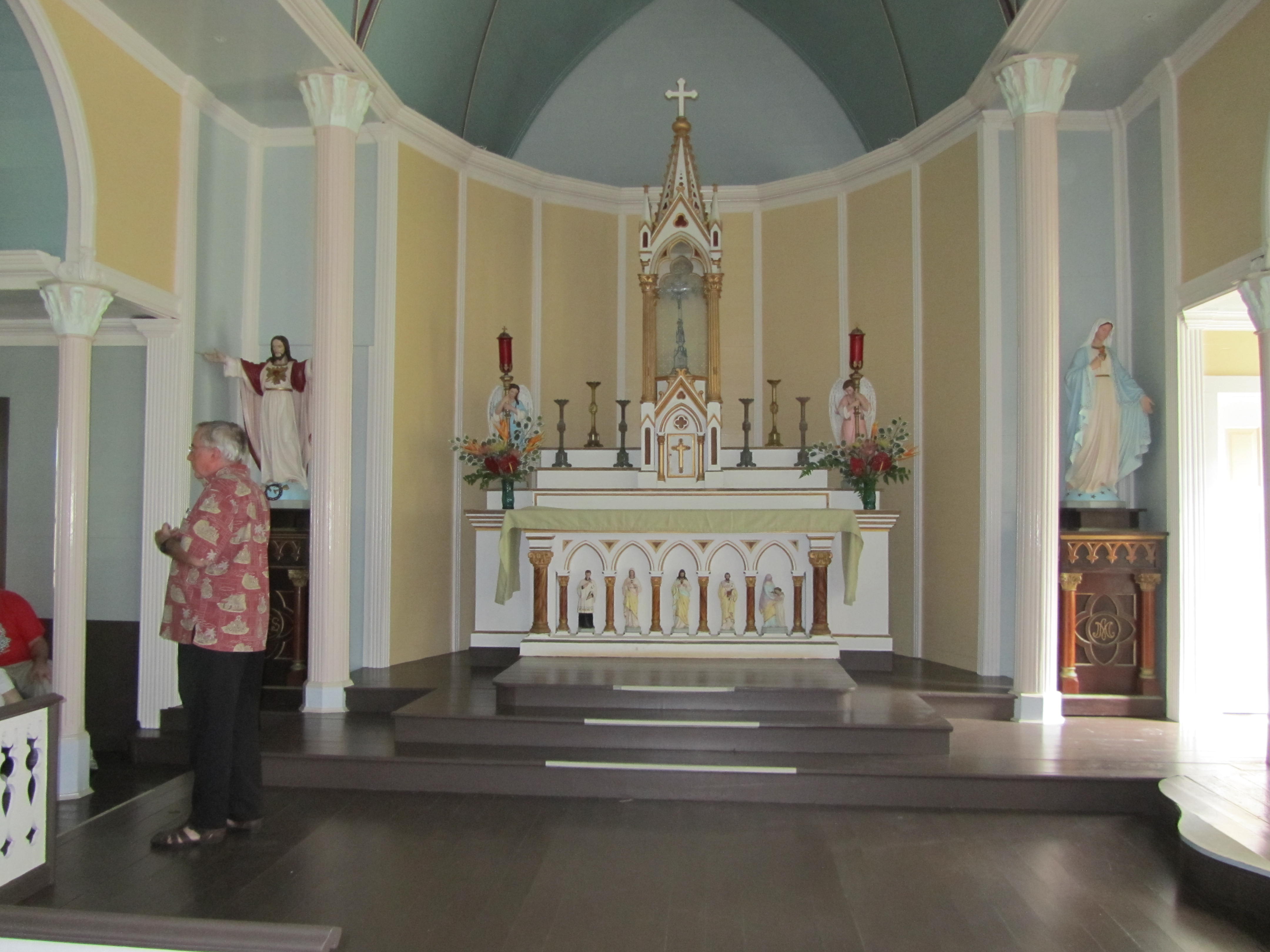 The inside of St Philomena Church with our tourguide.